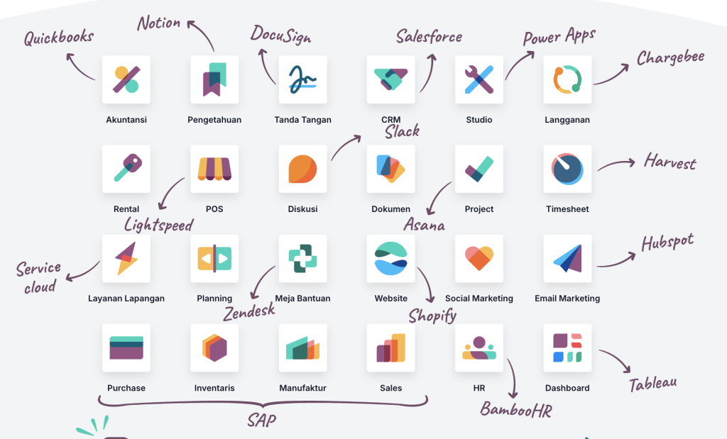 Odoo menghadirkan satu ekosistem aplikasi yang saling terhubung—mulai dari CRM, MRP, POS, Website & e-Commerce, Akuntansi, E-Invoice, Integrasi Sistem, Manajemen Gudang, Migrasi Data, Inventori, hingga Manajemen Proyek—semuanya dalam satu platform yang mudah digunakan dan scalable.